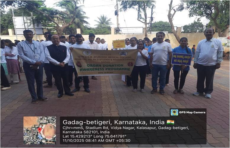 26/09/2025 Time : 11.00 am to 12.30 pm Venue : First Phase Classroom,D. G. M. Ayurveda Medical College, Hospital Gadag- Karnataka. Organ Donation awarness programme and pledge. |