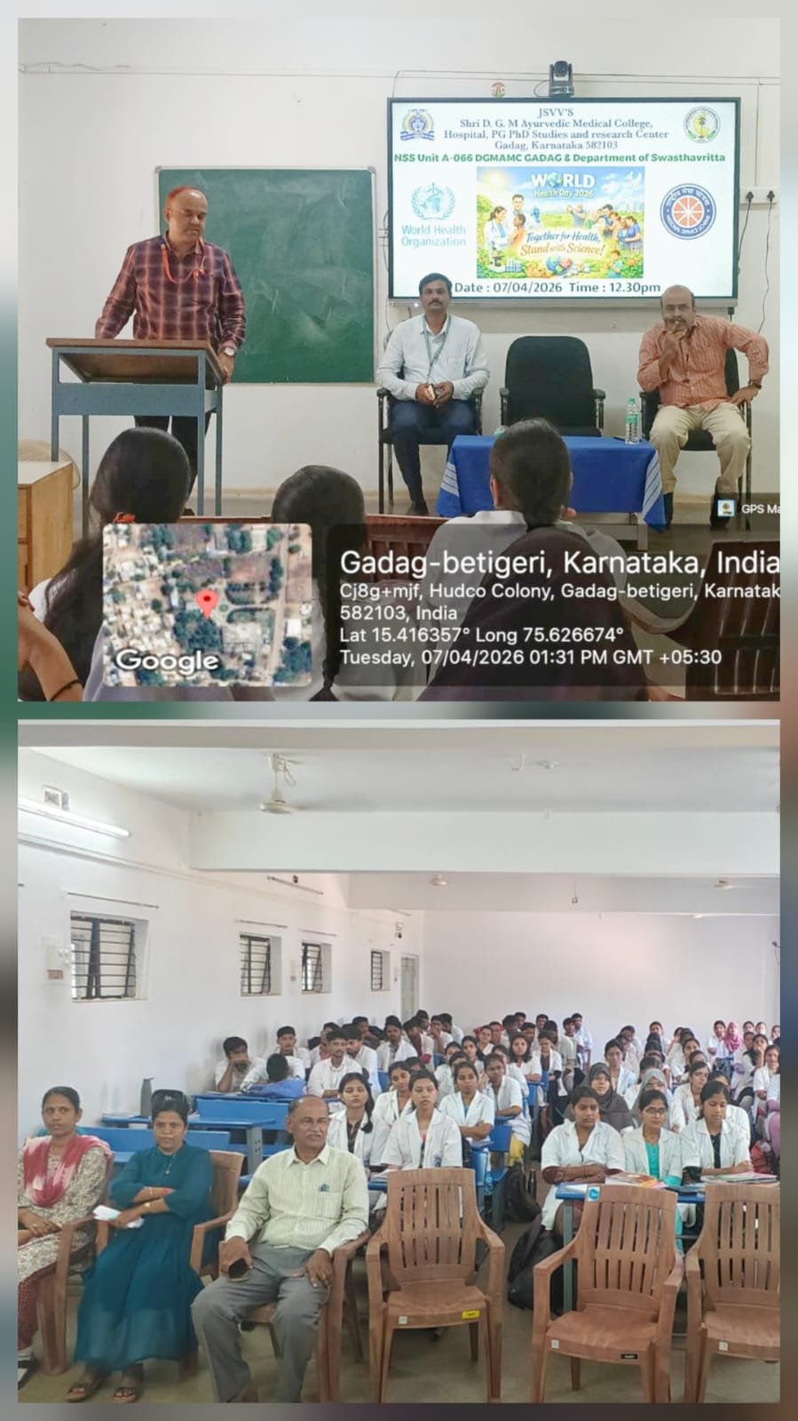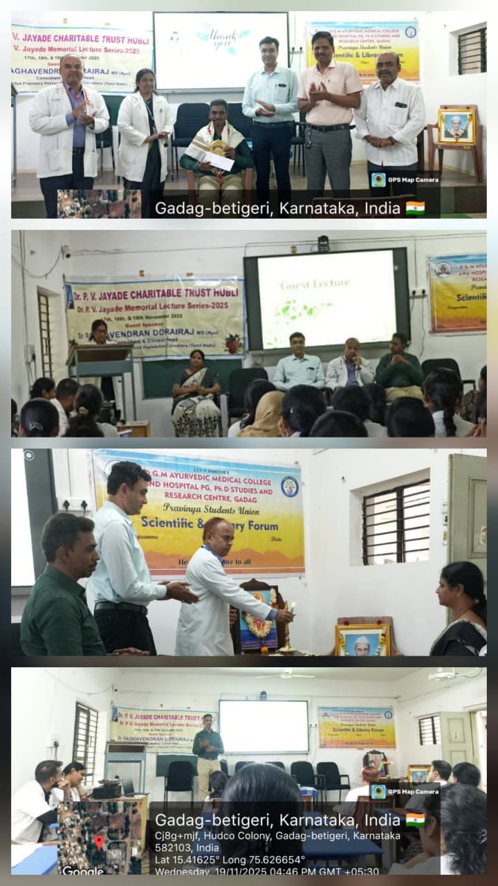 19.11.2025,Dr. P. V. Jayade Charitable trust, Hubballi. Guest lecture series. Today at D. G. M. Ayurveda Medical College, Hospital, Gadag. |