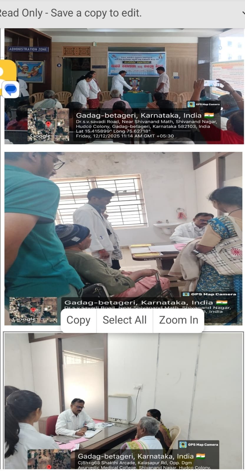 20/09/2025,President. 1. Dr. S.N. Belavadi. Principal of DGM.Ayu. Medical college Gadag 2. Dr. Chandrahas Vernekar. DCF(Social Forest Division) Gadag Chief Guest 3. Shri. Santosh Kenchappanavar. DCF (Social Forest Division)Gadag 4. Shri. Prakash Pavadigoudar. 5. Shri. Naman Naik RFO (Social Forest) Gadag. More than 60 patients were benefited by the general health checkup and free medicines. Dr. D G Koulme Dept. of Dravyaguna Dr. Budesh Dept. of SW. Dr. Y. A . Phaniband . Professor of Dept. Of K C Dr.M.D. Samudri. HOD and Professor of Shalya tantra , Dr. Mamata Dept. of Shalaykaya tantra Dr. Pallavi Dept. of P K Dr. Divyashri Dept. of Prasooti PG SCHOLARS and INTERNS were also participated in camp |