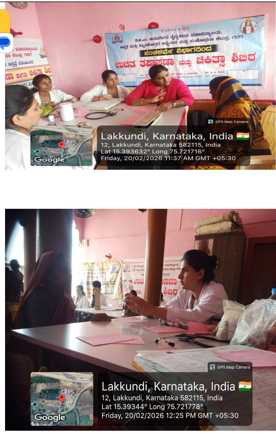 20/02/2026 Place: Lakkundi,The free health check-up and medicine distribution was organised at lakundi , by Department of Panchakarma DGM AMC Gadag on Total Patients 69 Faculties 01 Dr.soumya abbigeri PG’S Dr. Saraswati Dr.sanjana Internees Mr bhargava Mr shrikanta |