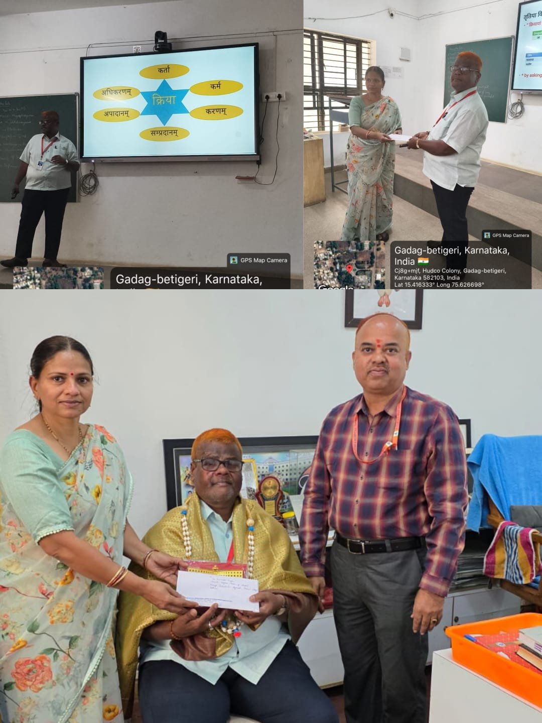 11.09.2021 10.00 AM,Philanthropic donor Shri Danappajis 36th and Shrimati Girijammajis 17th cordial remembrance, Punyasmarane has been devotionally programmed on 11.09.2021in our INSTITUTION. His holiness Jagadguru shree Abhinava Shivanand maha Swamiji, Honourable President of J S V V samsthe has blessed with his Holy presence. Shri: S. G. Palled Dr. G. B. Patil Directors of the samiti were the Guests and Beloved Principal Dr. U. V. Purad sir has presided over the function. There was a Swara shriddanjali seva for the devine souls by eminent Sitar vaadak Shri Damodar and tabla Sarah Shree Pulari Were presented Yogacharya Shree S S HIREMATH and all the faculties all the institution were presente |